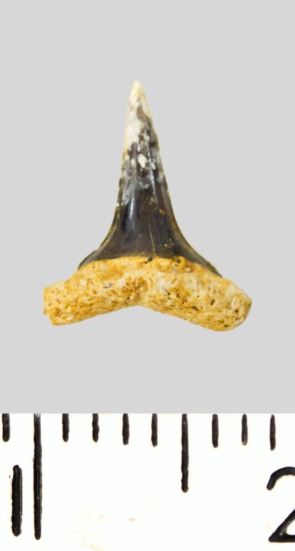 Зуб. Акула. Eostriatolamia subulata (Agassiz, 1843). Классификация: Хордовые Chordata, Позвоночные Vertebrata, Хрящевые рыбы Chondrichthyes, Пластиножаберные Elasmobranchii, Акулы Selachii, Ламнообразные Lamniformes, Песчаные акулы Odontaspididae