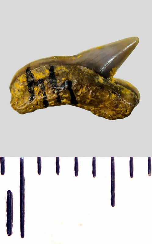 Зуб. Акула. Palaeoanacorax obliquus (Reuss, 1845). Классификация: Хордовые Chordata, Позвоночные Vertebrata, Хрящевые рыбы Chondrichthyes, Пластиножаберные Elasmobranchii, Акулы Selachii, Ламнообразные Lamniformes, Anacoracidae