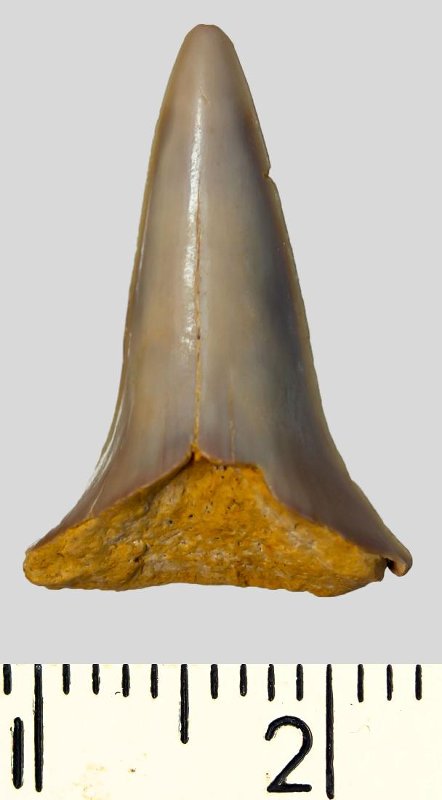 Зуб (фрагмент). Акула. Cretoxyrhinidae gen. indet. Классификация: Хордовые Chordata, Позвоночные Vertebrata, Хрящевые рыбы Chondrichthyes, Пластиножаберные Elasmobranchii, Акулы Selachii, Ламнообразные Lamniformes, Cretoxyrhinidae