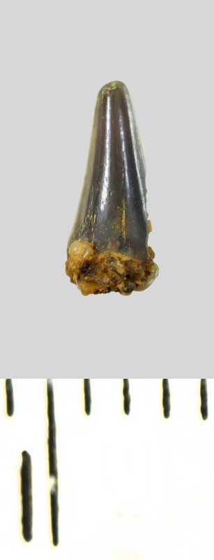 Зуб (фрагмент). Акула. Eostriatolamia subulata (Agassiz, 1843). Классификация: Хордовые Chordata, Позвоночные Vertebrata, Хрящевые рыбы Chondrichthyes, Пластиножаберные Elasmobranchii, Акулы Selachii, Ламнообразные Lamniformes, Песчаные акулы Odontaspididae