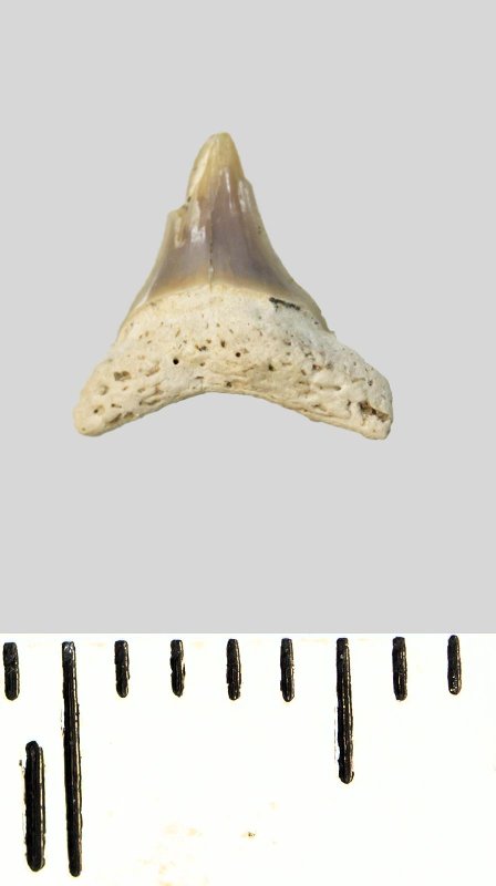 Зуб. Акула. Eostriatolamia subulata (Agassiz, 1843). Классификация: Хордовые Chordata, Позвоночные Vertebrata, Хрящевые рыбы Chondrichthyes, Пластиножаберные Elasmobranchii, Акулы Selachii, Ламнообразные Lamniformes, Песчаные акулы Odontaspididae