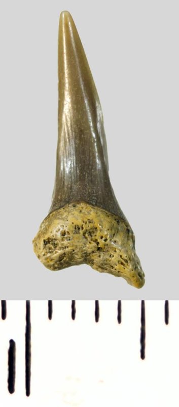 Зуб. Акула. Eostriatolamia subulata (Agassiz, 1843). Классификация: Хордовые Chordata, Позвоночные Vertebrata, Хрящевые рыбы Chondrichthyes, Пластиножаберные Elasmobranchii, Акулы Selachii, Ламнообразные Lamniformes, Песчаные акулы Odontaspididae