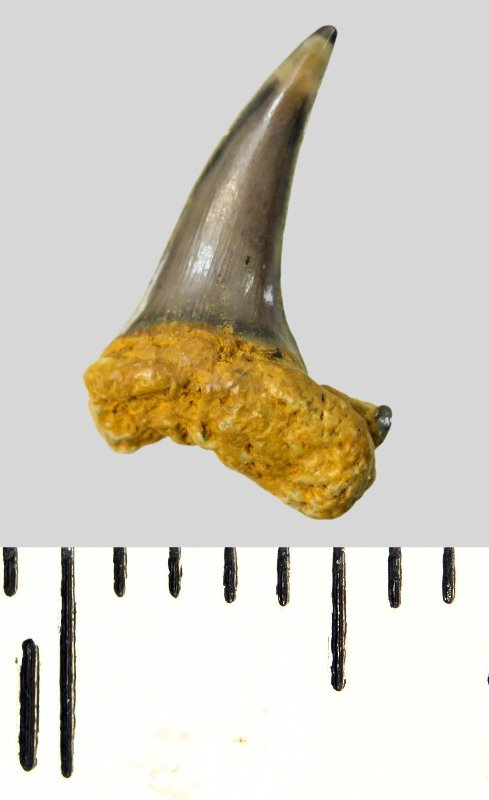 Зуб. Акула. Eostriatolamia subulata (Agassiz, 1843). Классификация: Хордовые Chordata, Позвоночные Vertebrata, Хрящевые рыбы Chondrichthyes, Пластиножаберные Elasmobranchii, Акулы Selachii, Ламнообразные Lamniformes, Песчаные акулы Odontaspididae
