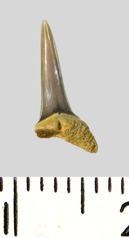 Зуб. Акула. Eostriatolamia subulata (Agassiz, 1843). Классификация: Хордовые Chordata, Позвоночные Vertebrata, Хрящевые рыбы Chondrichthyes, Пластиножаберные Elasmobranchii, Акулы Selachii, Ламнообразные Lamniformes, Песчаные акулы Odontaspididae