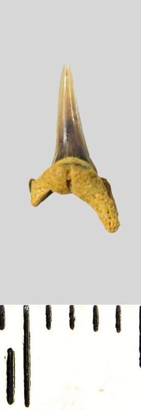 Зуб. Акула. Eostriatolamia subulata (Agassiz, 1843). Классификация: Хордовые Chordata, Позвоночные Vertebrata, Хрящевые рыбы Chondrichthyes, Пластиножаберные Elasmobranchii, Акулы Selachii, Ламнообразные Lamniformes, Песчаные акулы Odontaspididae
