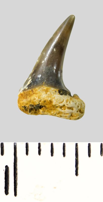 Зуб. Акула. Eostriatolamia subulata (Agassiz, 1843). Классификация: Хордовые Chordata, Позвоночные Vertebrata, Хрящевые рыбы Chondrichthyes, Пластиножаберные Elasmobranchii, Акулы Selachii, Ламнообразные Lamniformes, Песчаные акулы Odontaspididae