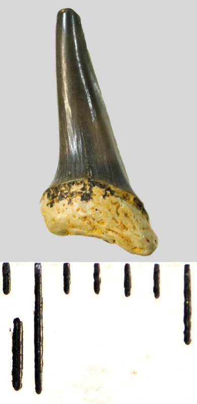 Зуб. Акула. Eostriatolamia subulata (Agassiz, 1843). Классификация: Хордовые Chordata, Позвоночные Vertebrata, Хрящевые рыбы Chondrichthyes, Пластиножаберные Elasmobranchii, Акулы Selachii, Ламнообразные Lamniformes, Песчаные акулы Odontaspididae