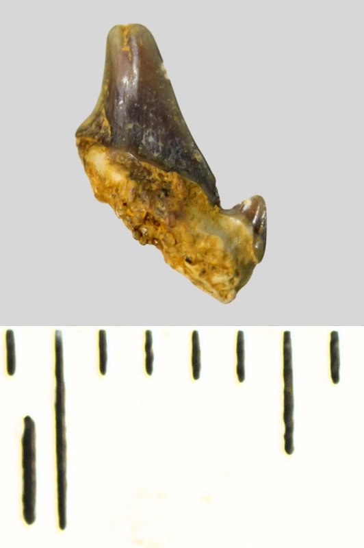Зуб. Акула. Eostriatolamia subulata (Agassiz, 1843). Классификация: Хордовые Chordata, Позвоночные Vertebrata, Хрящевые рыбы Chondrichthyes, Пластиножаберные Elasmobranchii, Акулы Selachii, Ламнообразные Lamniformes, Песчаные акулы Odontaspididae