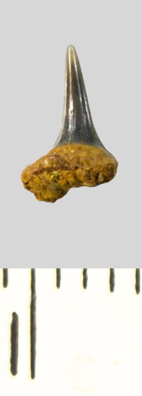 Зуб. Акула. Eostriatolamia subulata (Agassiz, 1843). Классификация: Хордовые Chordata, Позвоночные Vertebrata, Хрящевые рыбы Chondrichthyes, Пластиножаберные Elasmobranchii, Акулы Selachii, Ламнообразные Lamniformes, Песчаные акулы Odontaspididae