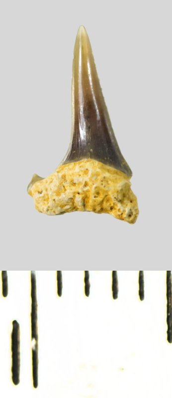 Зуб. Акула. Eostriatolamia subulata (Agassiz, 1843). Классификация: Хордовые Chordata, Позвоночные Vertebrata, Хрящевые рыбы Chondrichthyes, Пластиножаберные Elasmobranchii, Акулы Selachii, Ламнообразные Lamniformes, Песчаные акулы Odontaspididae