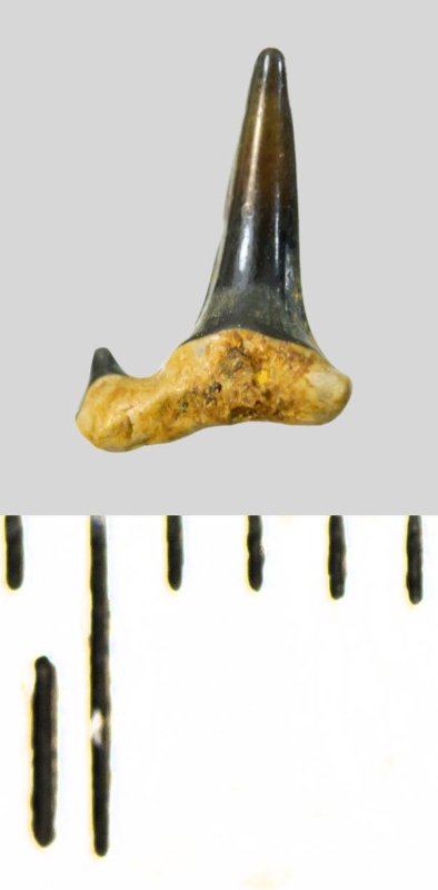 Зуб. Акула. Eostriatolamia subulata (Agassiz, 1843). Классификация: Хордовые Chordata, Позвоночные Vertebrata, Хрящевые рыбы Chondrichthyes, Пластиножаберные Elasmobranchii, Акулы Selachii, Ламнообразные Lamniformes, Песчаные акулы Odontaspididae