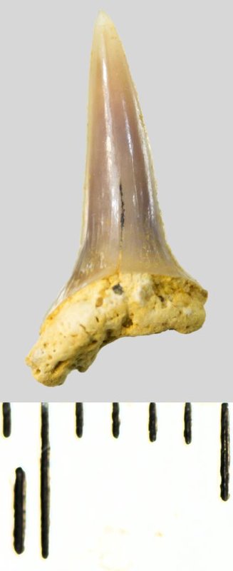Зуб. Акула. Eostriatolamia subulata (Agassiz, 1843). Классификация: Хордовые Chordata, Позвоночные Vertebrata, Хрящевые рыбы Chondrichthyes, Пластиножаберные Elasmobranchii, Акулы Selachii, Ламнообразные Lamniformes, Песчаные акулы Odontaspididae