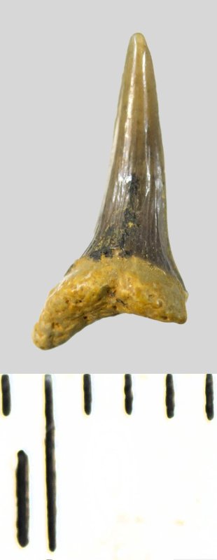 Зуб. Акула. Eostriatolamia subulata (Agassiz, 1843). Классификация: Хордовые Chordata, Позвоночные Vertebrata, Хрящевые рыбы Chondrichthyes, Пластиножаберные Elasmobranchii, Акулы Selachii, Ламнообразные Lamniformes, Песчаные акулы Odontaspididae