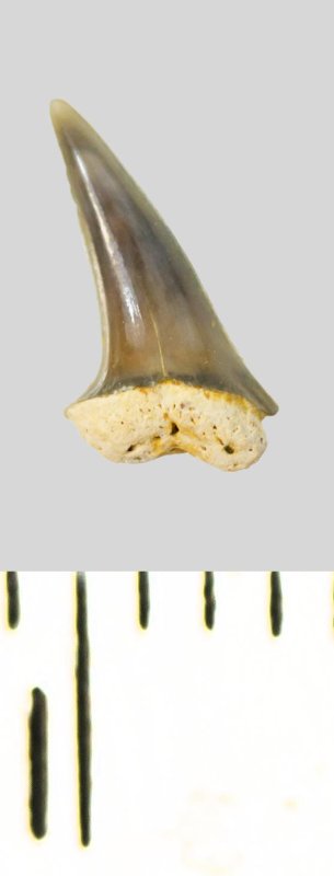 Зуб (фрагмент). Акула. Eostriatolamia subulata (Agassiz, 1843). Классификация: Хордовые Chordata, Позвоночные Vertebrata, Хрящевые рыбы Chondrichthyes, Пластиножаберные Elasmobranchii, Акулы Selachii, Ламнообразные Lamniformes, Песчаные акулы Odontaspididae