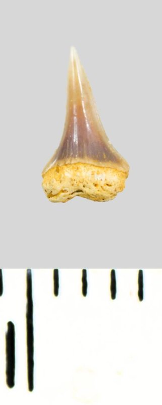 Зуб (фрагмент). Акула. Eostriatolamia subulata (Agassiz, 1843). Классификация: Хордовые Chordata, Позвоночные Vertebrata, Хрящевые рыбы Chondrichthyes, Пластиножаберные Elasmobranchii, Акулы Selachii, Ламнообразные Lamniformes, Песчаные акулы Odontaspididae