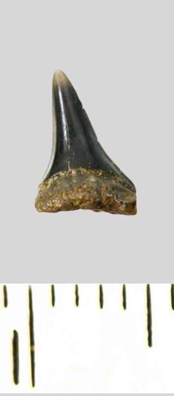 Зуб (фрагмент). Акула. Eostriatolamia subulata (Agassiz, 1843). Классификация: Хордовые Chordata, Позвоночные Vertebrata, Хрящевые рыбы Chondrichthyes, Пластиножаберные Elasmobranchii, Акулы Selachii, Ламнообразные Lamniformes, Песчаные акулы Odontaspididae