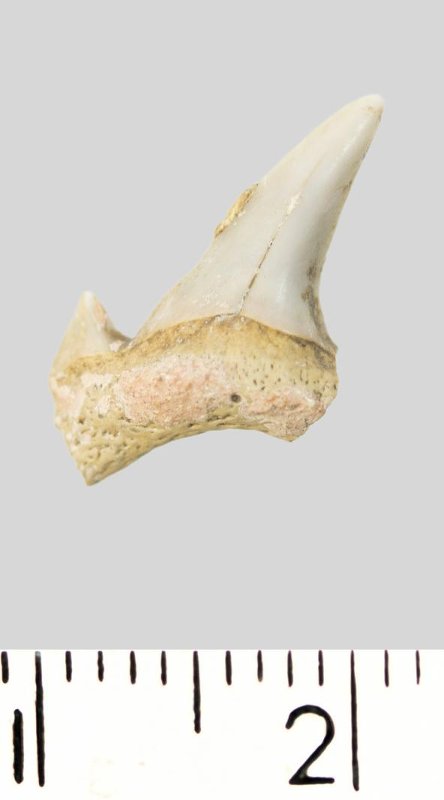 Зуб. Акула. Archaeolamna cf. kopingensis (Davis, 1890). Классификация: Хордовые Chordata, Позвоночные Vertebrata, Хрящевые рыбы Chondrichthyes, Пластиножаберные Elasmobranchii, Акулы Selachii, Ламнообразные Lamniformes, Cretoxyrhinidae
