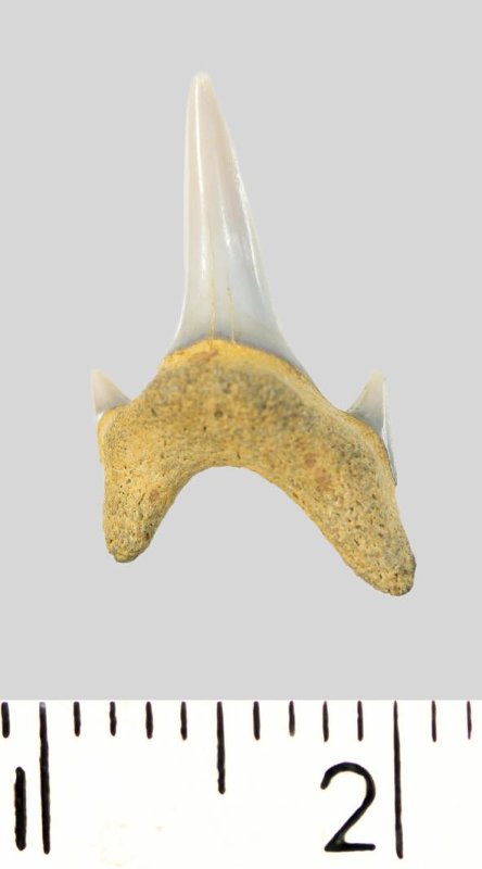 Зуб. Акула. Archaeolamna cf. kopingensis (Davis, 1890). Классификация: Хордовые Chordata, Позвоночные Vertebrata, Хрящевые рыбы Chondrichthyes, Пластиножаберные Elasmobranchii, Акулы Selachii, Ламнообразные Lamniformes, Cretoxyrhinidae