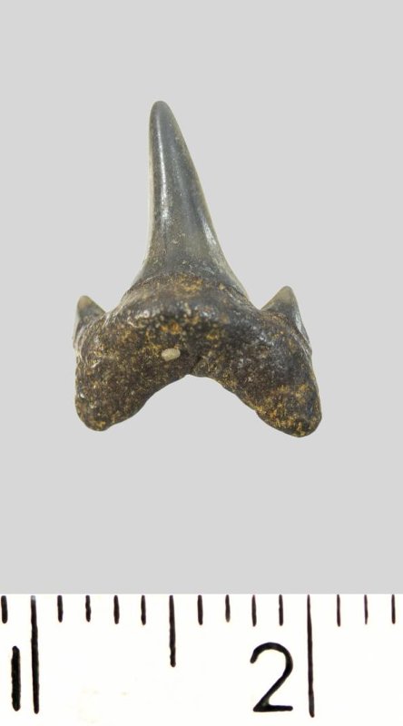 Зуб. Акула. Archaeolamna cf. kopingensis (Davis, 1890). Классификация: Хордовые Chordata, Позвоночные Vertebrata, Хрящевые рыбы Chondrichthyes, Пластиножаберные Elasmobranchii, Акулы Selachii, Ламнообразные Lamniformes, Cretoxyrhinidae