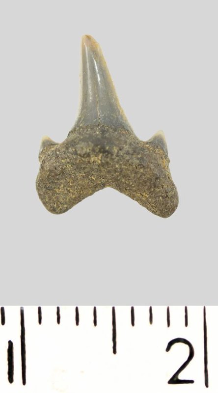 Зуб. Акула. Archaeolamna cf. kopingensis (Davis, 1890). Классификация: Хордовые Chordata, Позвоночные Vertebrata, Хрящевые рыбы Chondrichthyes, Пластиножаберные Elasmobranchii, Акулы Selachii, Ламнообразные Lamniformes, Cretoxyrhinidae