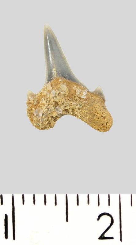 Зуб. Акула. Archaeolamna cf. kopingensis (Davis, 1890). Классификация: Хордовые Chordata, Позвоночные Vertebrata, Хрящевые рыбы Chondrichthyes, Пластиножаберные Elasmobranchii, Акулы Selachii, Ламнообразные Lamniformes, Cretoxyrhinidae