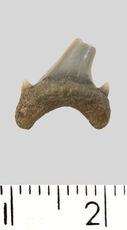Зуб. Акула. Archaeolamna cf. kopingensis (Davis, 1890). Классификация: Хордовые Chordata, Позвоночные Vertebrata, Хрящевые рыбы Chondrichthyes, Пластиножаберные Elasmobranchii, Акулы Selachii, Ламнообразные Lamniformes, Cretoxyrhinidae
