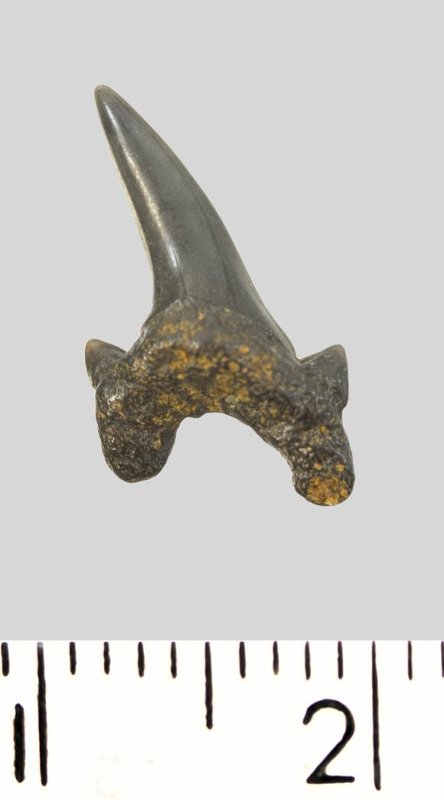 Зуб. Акула. Archaeolamna cf. kopingensis (Davis, 1890). Классификация: Хордовые Chordata, Позвоночные Vertebrata, Хрящевые рыбы Chondrichthyes, Пластиножаберные Elasmobranchii, Акулы Selachii, Ламнообразные Lamniformes, Cretoxyrhinidae