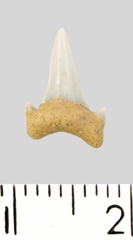 Зуб. Акула. Archaeolamna cf. kopingensis (Davis, 1890). Классификация: Хордовые Chordata, Позвоночные Vertebrata, Хрящевые рыбы Chondrichthyes, Пластиножаберные Elasmobranchii, Акулы Selachii, Ламнообразные Lamniformes, Cretoxyrhinidae