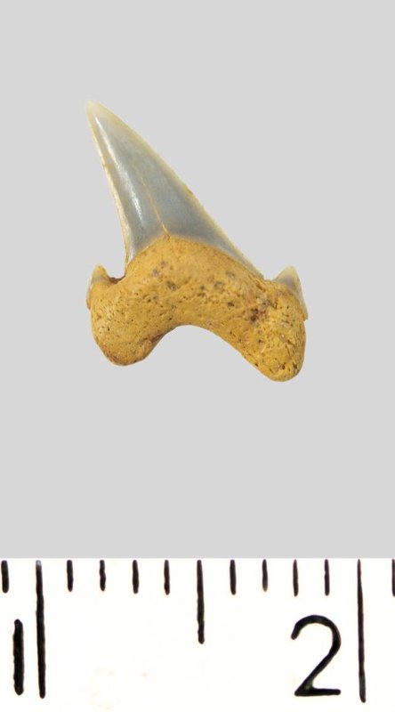 Зуб. Акула. Archaeolamna cf. kopingensis (Davis, 1890). Классификация: Хордовые Chordata, Позвоночные Vertebrata, Хрящевые рыбы Chondrichthyes, Пластиножаберные Elasmobranchii, Акулы Selachii, Ламнообразные Lamniformes, Cretoxyrhinidae