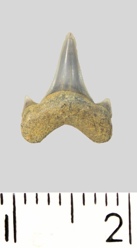 Зуб. Акула. Archaeolamna cf. kopingensis (Davis, 1890). Классификация: Хордовые Chordata, Позвоночные Vertebrata, Хрящевые рыбы Chondrichthyes, Пластиножаберные Elasmobranchii, Акулы Selachii, Ламнообразные Lamniformes, Cretoxyrhinidae