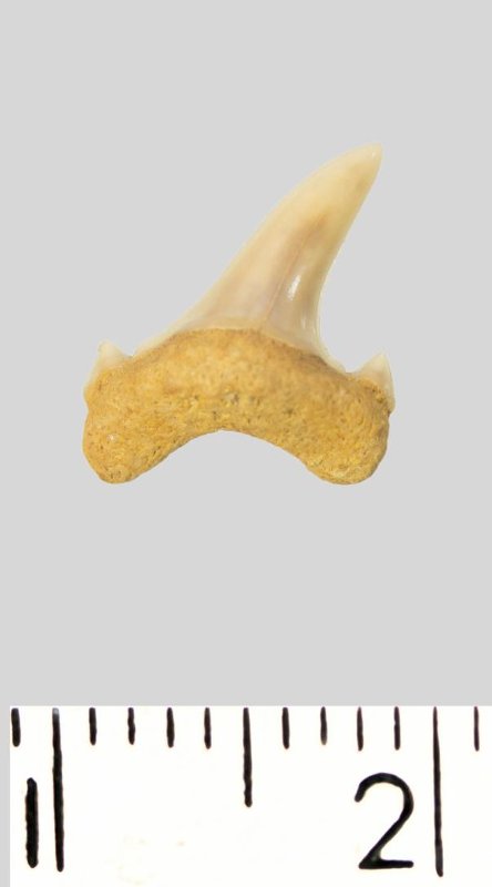 Зуб. Акула. Archaeolamna cf. kopingensis (Davis, 1890). Классификация: Хордовые Chordata, Позвоночные Vertebrata, Хрящевые рыбы Chondrichthyes, Пластиножаберные Elasmobranchii, Акулы Selachii, Ламнообразные Lamniformes, Cretoxyrhinidae