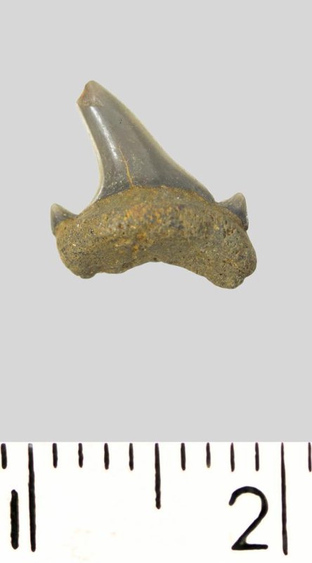 Зуб. Акула. Archaeolamna cf. kopingensis (Davis, 1890). Классификация: Хордовые Chordata, Позвоночные Vertebrata, Хрящевые рыбы Chondrichthyes, Пластиножаберные Elasmobranchii, Акулы Selachii, Ламнообразные Lamniformes, Cretoxyrhinidae