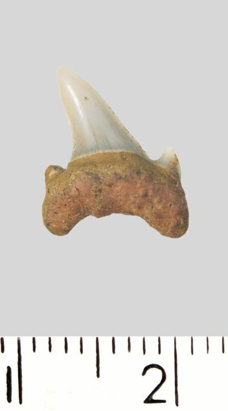 Зуб. Акула. Archaeolamna cf. kopingensis (Davis, 1890). Классификация: Хордовые Chordata, Позвоночные Vertebrata, Хрящевые рыбы Chondrichthyes, Пластиножаберные Elasmobranchii, Акулы Selachii, Ламнообразные Lamniformes, Cretoxyrhinidae