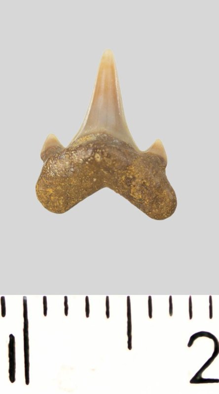 Зуб. Акула. Archaeolamna cf. kopingensis (Davis, 1890). Классификация: Хордовые Chordata, Позвоночные Vertebrata, Хрящевые рыбы Chondrichthyes, Пластиножаберные Elasmobranchii, Акулы Selachii, Ламнообразные Lamniformes, Cretoxyrhinidae
