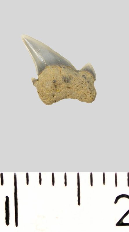 Зуб. Акула. Archaeolamna cf. kopingensis (Davis, 1890). Классификация: Хордовые Chordata, Позвоночные Vertebrata, Хрящевые рыбы Chondrichthyes, Пластиножаберные Elasmobranchii, Акулы Selachii, Ламнообразные Lamniformes, Cretoxyrhinidae