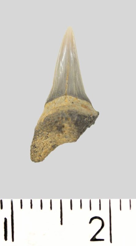 Зуб. Акула. Protolamna cf. sokolovi Cappetta, 1980. Классификация: Хордовые Chordata, Позвоночные Vertebrata, Хрящевые рыбы Chondrichthyes, Пластиножаберные Elasmobranchii, Акулы Selachii, Ламнообразные Lamniformes, Pseudoscapanorhynchidae