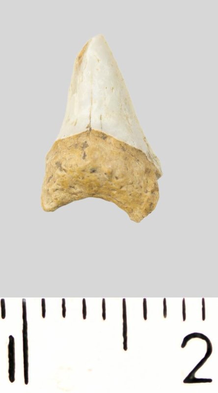 Зуб. Акула. Archaeolamna cf. kopingensis (Davis, 1890). Классификация: Хордовые Chordata, Позвоночные Vertebrata, Хрящевые рыбы Chondrichthyes, Пластиножаберные Elasmobranchii, Акулы Selachii, Ламнообразные Lamniformes, Cretoxyrhinidae