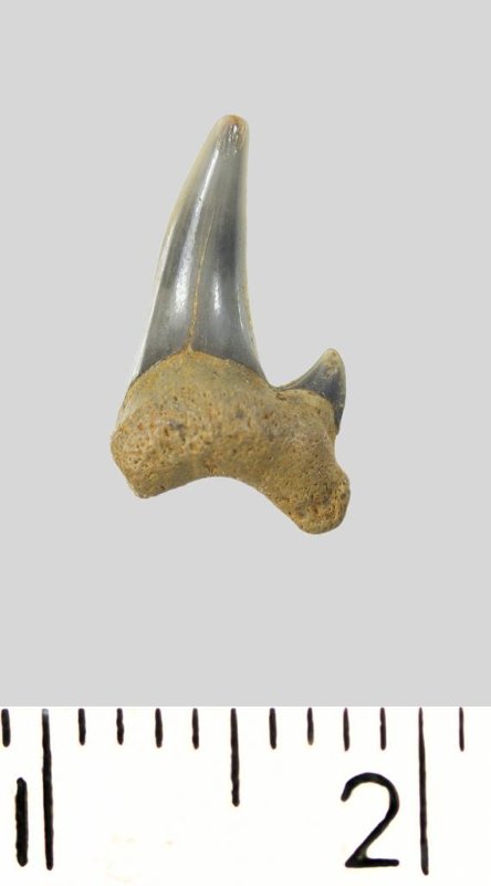 Зуб. Акула. Archaeolamna cf. kopingensis (Davis, 1890). Классификация: Хордовые Chordata, Позвоночные Vertebrata, Хрящевые рыбы Chondrichthyes, Пластиножаберные Elasmobranchii, Акулы Selachii, Ламнообразные Lamniformes, Cretoxyrhinidae