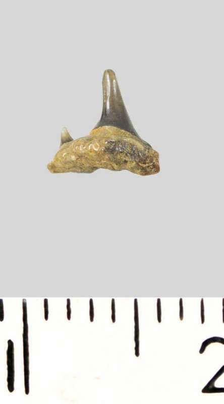 Зуб. Акула. Synechodus dubrisiensis (Mackie, 1863). Классификация: Хордовые Chordata, Позвоночные Vertebrata, Хрящевые рыбы Chondrichthyes, Пластиножаберные Elasmobranchii, Акулы Selachii, Синеходонтообразные Synechodontiformes, Palaeospinacidae