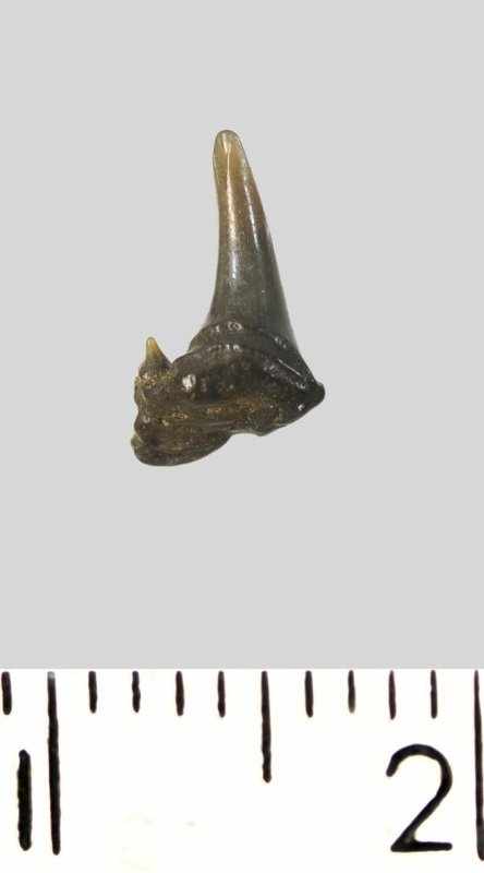 Зуб. Акула. Synechodus dubrisiensis (Mackie, 1863). Классификация: Хордовые Chordata, Позвоночные Vertebrata, Хрящевые рыбы Chondrichthyes, Пластиножаберные Elasmobranchii, Акулы Selachii, Синеходонтообразные Synechodontiformes, Palaeospinacidae