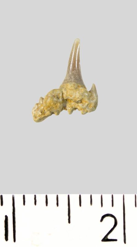 Зуб. Акула. Synechodus dubrisiensis (Mackie, 1863). Классификация: Хордовые Chordata, Позвоночные Vertebrata, Хрящевые рыбы Chondrichthyes, Пластиножаберные Elasmobranchii, Акулы Selachii, Синеходонтообразные Synechodontiformes, Palaeospinacidae