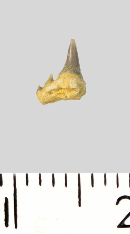Зуб. Акула. Synechodus dubrisiensis (Mackie, 1863). Классификация: Хордовые Chordata, Позвоночные Vertebrata, Хрящевые рыбы Chondrichthyes, Пластиножаберные Elasmobranchii, Акулы Selachii, Синеходонтообразные Synechodontiformes, Palaeospinacidae