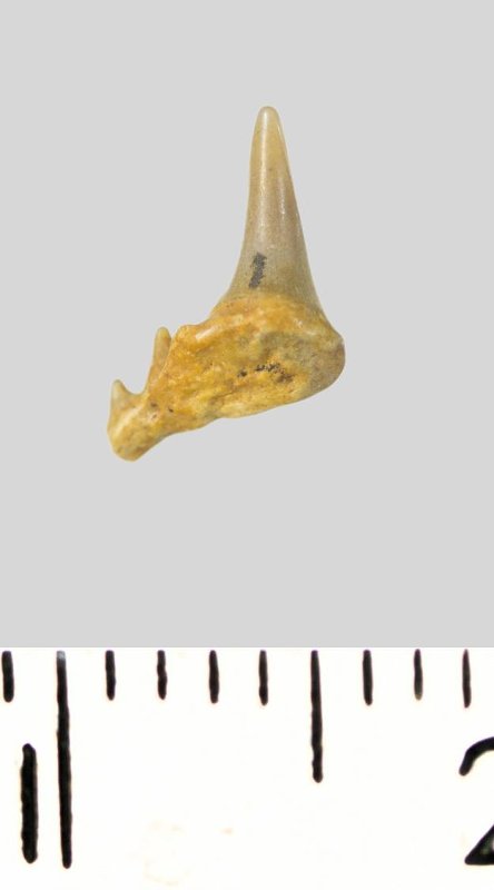 Зуб. Акула. Synechodus dubrisiensis (Mackie, 1863). Классификация: Хордовые Chordata, Позвоночные Vertebrata, Хрящевые рыбы Chondrichthyes, Пластиножаберные Elasmobranchii, Акулы Selachii, Синеходонтообразные Synechodontiformes, Palaeospinacidae