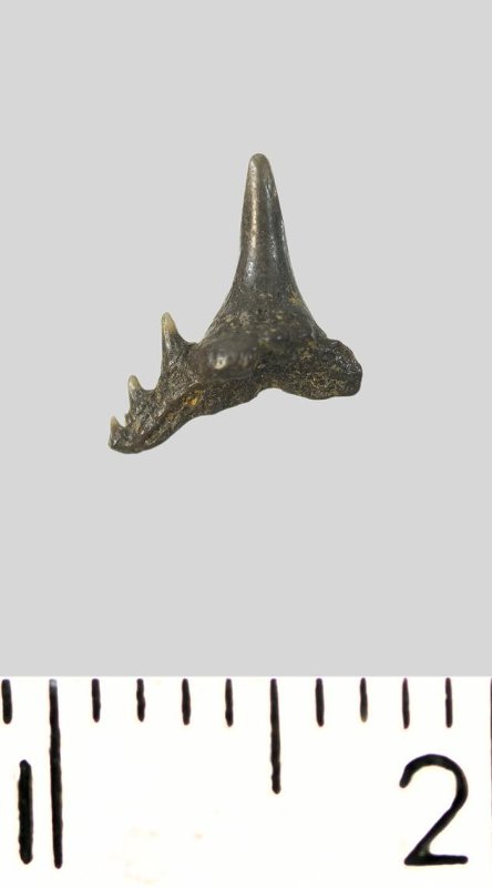 Зуб. Акула. Synechodus dubrisiensis (Mackie, 1863). Классификация: Хордовые Chordata, Позвоночные Vertebrata, Хрящевые рыбы Chondrichthyes, Пластиножаберные Elasmobranchii, Акулы Selachii, Синеходонтообразные Synechodontiformes, Palaeospinacidae