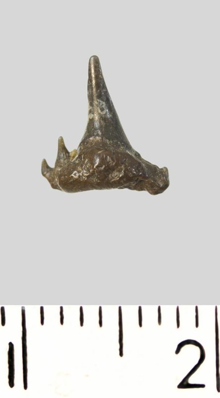 Зуб. Акула. Synechodus dubrisiensis (Mackie, 1863). Классификация: Хордовые Chordata, Позвоночные Vertebrata, Хрящевые рыбы Chondrichthyes, Пластиножаберные Elasmobranchii, Акулы Selachii, Синеходонтообразные Synechodontiformes, Palaeospinacidae