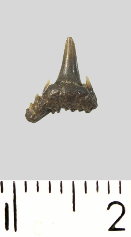 Зуб. Акула. Synechodus dubrisiensis (Mackie, 1863). Классификация: Хордовые Chordata, Позвоночные Vertebrata, Хрящевые рыбы Chondrichthyes, Пластиножаберные Elasmobranchii, Акулы Selachii, Синеходонтообразные Synechodontiformes, Palaeospinacidae
