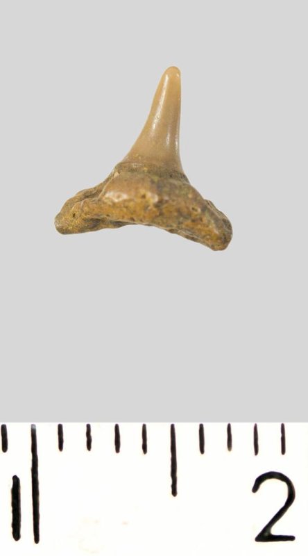 Зуб. Акула. Synechodus dubrisiensis (Mackie, 1863). Классификация: Хордовые Chordata, Позвоночные Vertebrata, Хрящевые рыбы Chondrichthyes, Пластиножаберные Elasmobranchii, Акулы Selachii, Синеходонтообразные Synechodontiformes, Palaeospinacidae