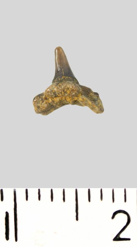 Зуб. Акула. Synechodus dubrisiensis (Mackie, 1863). Классификация: Хордовые Chordata, Позвоночные Vertebrata, Хрящевые рыбы Chondrichthyes, Пластиножаберные Elasmobranchii, Акулы Selachii, Синеходонтообразные Synechodontiformes, Palaeospinacidae