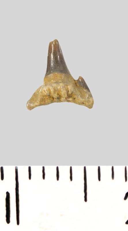 Зуб. Акула. Synechodus dubrisiensis (Mackie, 1863). Классификация: Хордовые Chordata, Позвоночные Vertebrata, Хрящевые рыбы Chondrichthyes, Пластиножаберные Elasmobranchii, Акулы Selachii, Синеходонтообразные Synechodontiformes, Palaeospinacidae