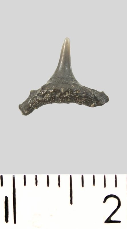 Зуб. Акула. Synechodus dubrisiensis (Mackie, 1863). Классификация: Хордовые Chordata, Позвоночные Vertebrata, Хрящевые рыбы Chondrichthyes, Пластиножаберные Elasmobranchii, Акулы Selachii, Синеходонтообразные Synechodontiformes, Palaeospinacidae
